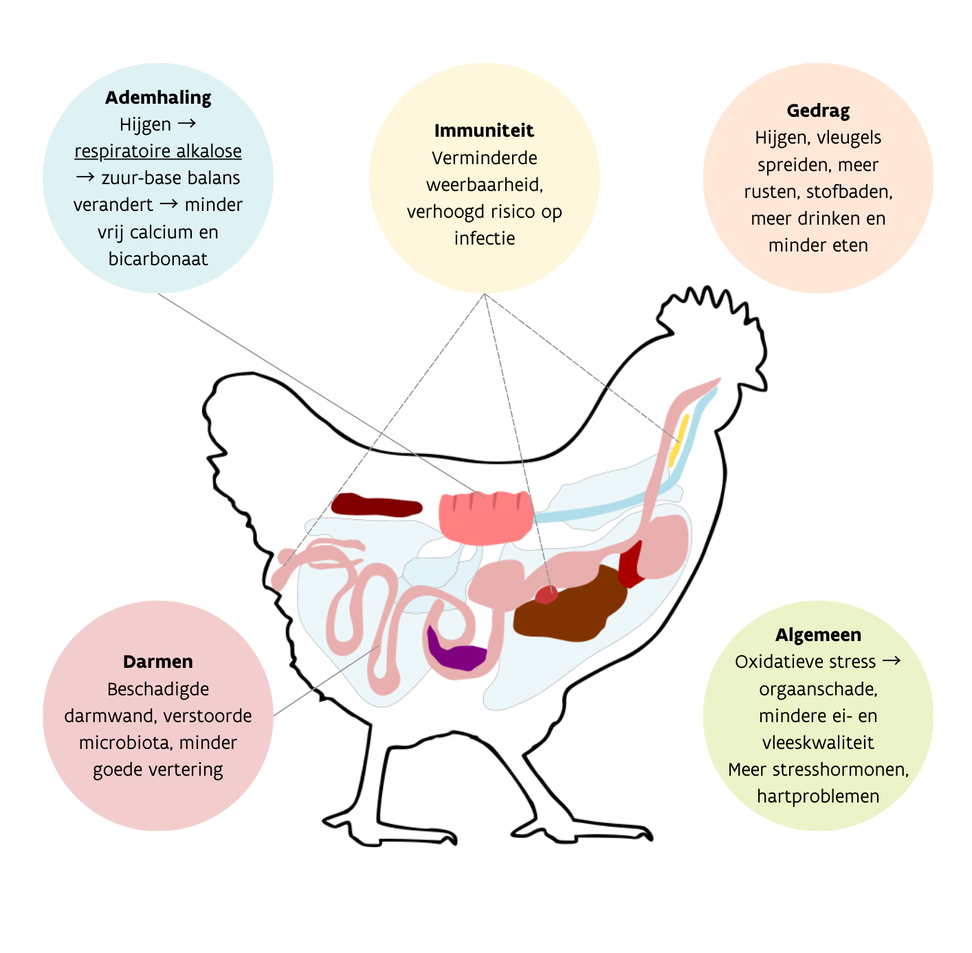 Figuur 3. De verschillende effecten van hittestress in het lichaam van de kip